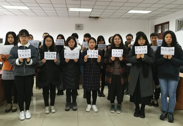 活动的组织者英语1502班团支部书记吕安琪同学说:“我们今天悼念79年前在那场屠杀中遇难的同胞,不是为了记住仇恨,而是为了祈愿和平。作为年轻一代的大学生,我们有义务为了祖国的和平与发展贡献自己的力量!”