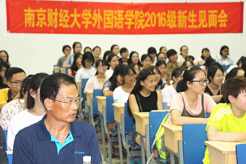 晚上六点半,学院在法政学科楼101室举办2016级新生见面会。全体院领导、系主任、教授代表出席此次见面会。见面会由党委副书记李慕原主持。与会的院领导、老师先后讲话。党委书记刘浩对同学们的到来表示祝贺,并从学习、生活等各个方面给予新生建议。他希望同学们能够认真对待即将到来的大学生活,在大学期间磨练意志、独立自主、学会感恩。院长肖辉用中英文结合的表达介绍了学院的基本情况以及在教学、科研、人才培养方面的成果,鼓励新生努力学习,珍惜大学时光。副院长邵怡从本科教学的角度对新生的学习提出了要求。张高远教授、法语系副主任顾晓燕分别从人文精神的培养,学习习惯的养成等方面与新生做了交流。学生会主席陈轶梵发言,鼓励新生们积极投入到全新的大学生活。