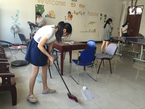 6月17日,毕业生们自发组织来到学院,打扫了学院的教研室和教师办公室,他们精简陈列杂物,将沉积的灰尘洗净,将蒙尘的玻璃擦至窗明几净。在大家的辛勤劳动后,教研室、办公室焕然一新,让老师们十分感动。随后,他们顶着烈日,来到学院位于图书馆前的海棠园,在毕业前最后一次为海棠树除草、浇水、松土。