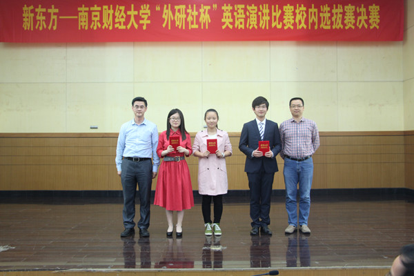 此次比赛共有来自全校各学院的两百多名选手报名参赛,经过两轮的角逐,共有13位选手进入决赛。在决赛中,选手们围绕“Be a Pioneer of Civilized Manners”这一主题进行为时3分钟的演讲,并接受评委的现场提问。选手们的演讲见解深刻、各具特色。他们成熟稳健,优雅自然的台风赢得了现场评委和观众的阵阵掌声与欢呼。最终,财政与税务学院的邵帅,金融学院的杨田恬和林雪获得大赛一等奖。获得比赛前8名的选手可参加学校组织的英语演讲培训,培训后将选出两名选手代表学校参加2016年“外研社杯”英语演讲比赛江苏省赛。在比赛中场休息的时候,来自美国的大学生还即兴演唱了英文歌曲,将现场气氛带向高潮,赢得了全场喝彩。