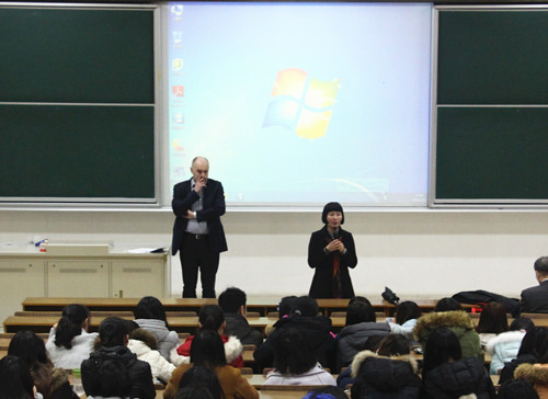 3月8日晚,英国斯特拉斯克莱德大学陆懋祖教授一行来我院宣讲国际合作项目,宣讲会在教B302教室举行。校国际处处长黄能、副处长王娟,我院院长肖辉,辅导员孟德明出席了宣讲会。宣讲会由院长肖辉主持。学院13、14、15三个年级的同学参加了宣讲会。