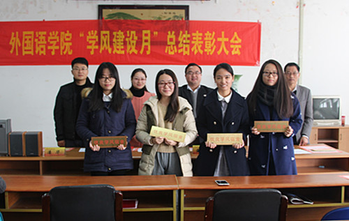 孟德明老师宣读了《关于表彰英国上市公司3652015—2016学年第一学期“学风建设月”先进集体和先进个人的决定》,学风建设月期间,我院开展了“善学达人”和“最美宿舍”评选。法语1301班王宁倩等18名同学获得“善学达人”荣誉称号,12号站2栋503A寝室等10个学生宿舍获得“最美宿舍”荣誉称号。