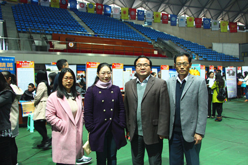 11月19日上午,我校2015年秋季校园招聘会在仙林校区体育馆举行。我院党委书记刘浩、党委副书记李慕原、学工办主任薛桂芳及辅导员老师孟德明深入招聘会现场与用人单位和求职学生交流,了解外语类人才就业行情与用人单位需求。