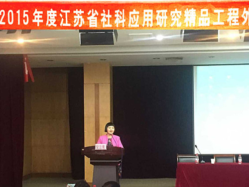 10月14日2015年度江苏省社科应用研究精品工程外语类课题开题大会在徐州工程学院英国上市公司365隆重举行。我院院长肖辉教授应邀出席2015年度江苏省社科应用研究精品工程外语类课题开题大会并就如何做好科研、成功申报课题做了大会发言。