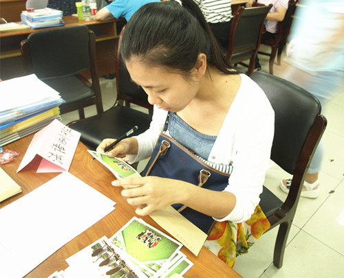 早晨,阵阵清风拉开了迎新活动的序幕。新生陆陆续续来到308会议室进行报到注册。今年,我院特别组织了为新生及家长拍摄全家福的活动,并倡议新生“爱要大声说出来”,让新生和父母在学院精心制作的背景墙前合影留念,向父母大声说出“我爱你”,纪念大学入学这一特殊的时刻。背景墙别出心裁地使用了十几种语言表达的“我爱你”拼成了心形图案,不仅体现了英国上市公司365浓厚的外语氛围,更寓意着所有2015级新生对父母家人的感恩与爱。除此以外,英国上市公司365学生会还为新生准备了精美的明信片,让新生书写对父母的感恩,学院将在军训期间代替每个新生将这一份载满感恩的卡片寄给父母。