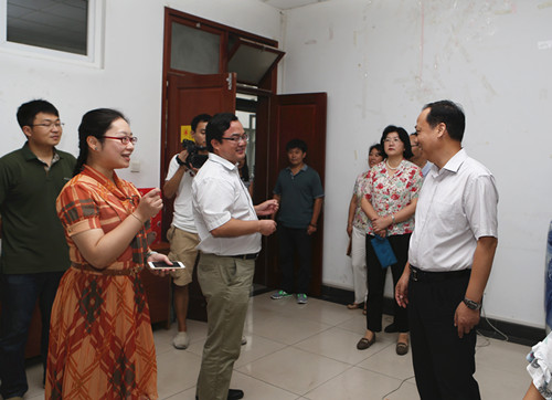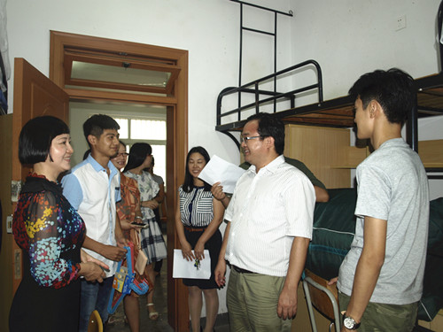 下午三时,校长宋学锋、副校长邱伟芬一行来我院看望新生和迎新志愿者,与工作人员了解新生报到到校情况。