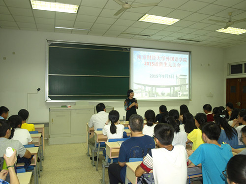 与会的院领导、老师先后讲话。院长肖辉用中英文结合的表达介绍了学院的基本情况以及在教学、科研、人才培养方面的成果,并介绍了我院与英国高校的合作项目,鼓励新生努力学习,珍惜大学时光。党委书记刘浩对同学们的到来表示祝贺,并从学习、生活等各个方面给予新生建议。他希望同学们能够认真对待即将到来的大学生活,在大学期间磨练意志、独立自主、学会感恩。副院长邵怡从本科教学的角度对新生的学习提出了要求。张高远教授、英语系副主任左敏、法语系副主任顾晓燕分别从人文精神的培养,学习习惯的养成等方面与新生做了交流。