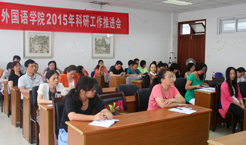 7月7日下午,为推进学院科研工作发展,我院在法政学科楼308会议室召开2015年科研工作推进会。南京大学教授、博士生导师,中国语用学研究会常务副会长陈新仁,校科研处副处长杜修立应邀出席会议,我院全体党政领导、全体教师参加会议,会议由院长肖辉教授主持。