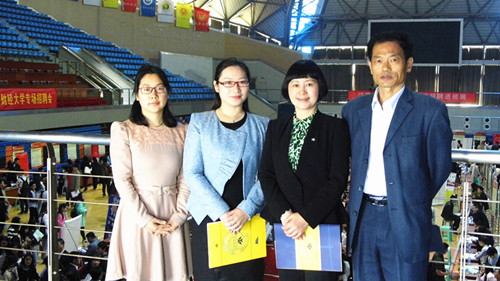 4月22日上午,我校2015年春季校园招聘会在仙林校区体育馆举行。我院院长肖辉、党委副书记李慕原、学工办主任薛桂芳及辅导员老师孟德明深入招聘会现场与用人单位和求职学生交流,了解外语类人才就业行情与用人单位需求。