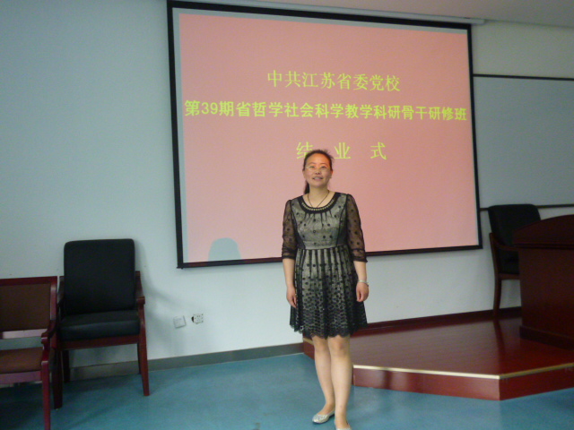 2014年5月5日至16日, 在中共江苏省委党校举办了第39期省哲学社会科学教学科研骨干研修班。来自全省各高校共102名教师参加了该研修班的学习。我院陈芙蓉副教授参加了该研修班学习。本期研修班以邓小平理论、“三个代表”重要思想和科学发展观为指导,认真学习党的十八大、十八届三中全会、习近平总书记系列重要讲话、省第十二次党代会及历次全会精神,以坚定中国特色社会主义“三个自信”、开创科学发展新局面为主题,深入学习贯彻《中共中央关于进一步繁荣发展哲学社会科学的意见》、省委省政府《加快推进社科强省建设实施意见》等重要文件精神。在短暂的12天中,省委党校组织学员们聆听了关于坚持中国特色社会主义理论体系和关于正确学习和认识党的历史的重点报告,还认真学习了7场联系江苏实际,贯彻十八大精神的专题报告,同时还奔赴昆山市,现场考察了昆山市社区管理与生态文明建设以及新农村建设与创新发展。通过这次短暂的研修,老师们纷纷表示收获很大。这次学习不仅使大家加深了对中央和省委一系列重大战略部署的理解,了解和把握了马克思主义中国化最新成果、中国特色社会主义在江苏的具体实践,同时增强了做好社科理论工作的政治责任感,历史使命感和事业荣誉感。通过学习,每位学员意识到在以后的工作中需要不断提高自身素质,积极培育和践行社会主义核心价值观,为谱写“中国梦”江苏篇章贡献出自己的绵薄之力。
