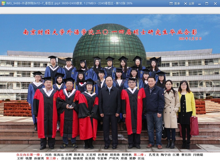2014届硕士研究生毕业典礼暨学位授予仪式结束后,校党委书记陈章龙教授和我院师生亲切合影留念。