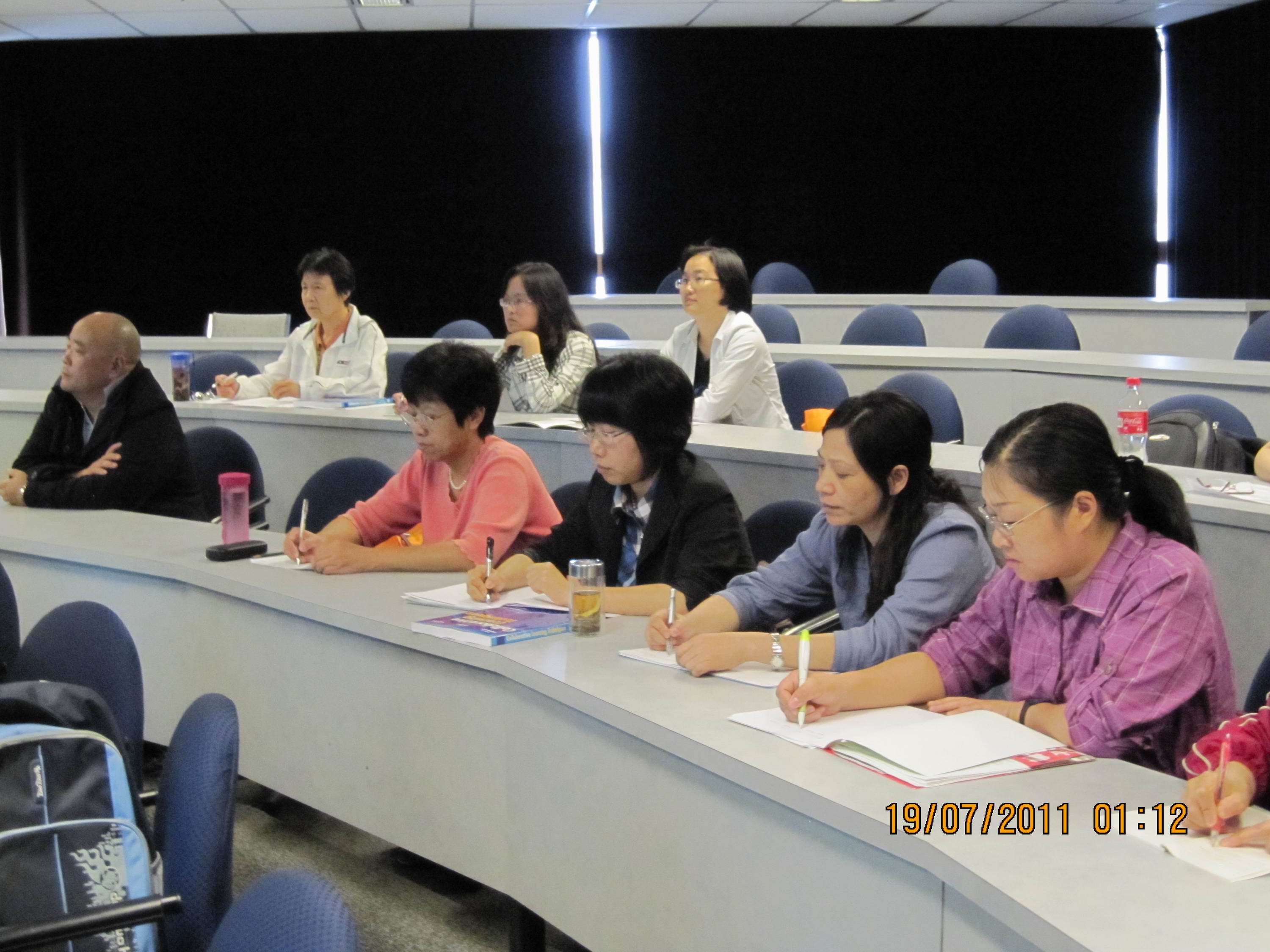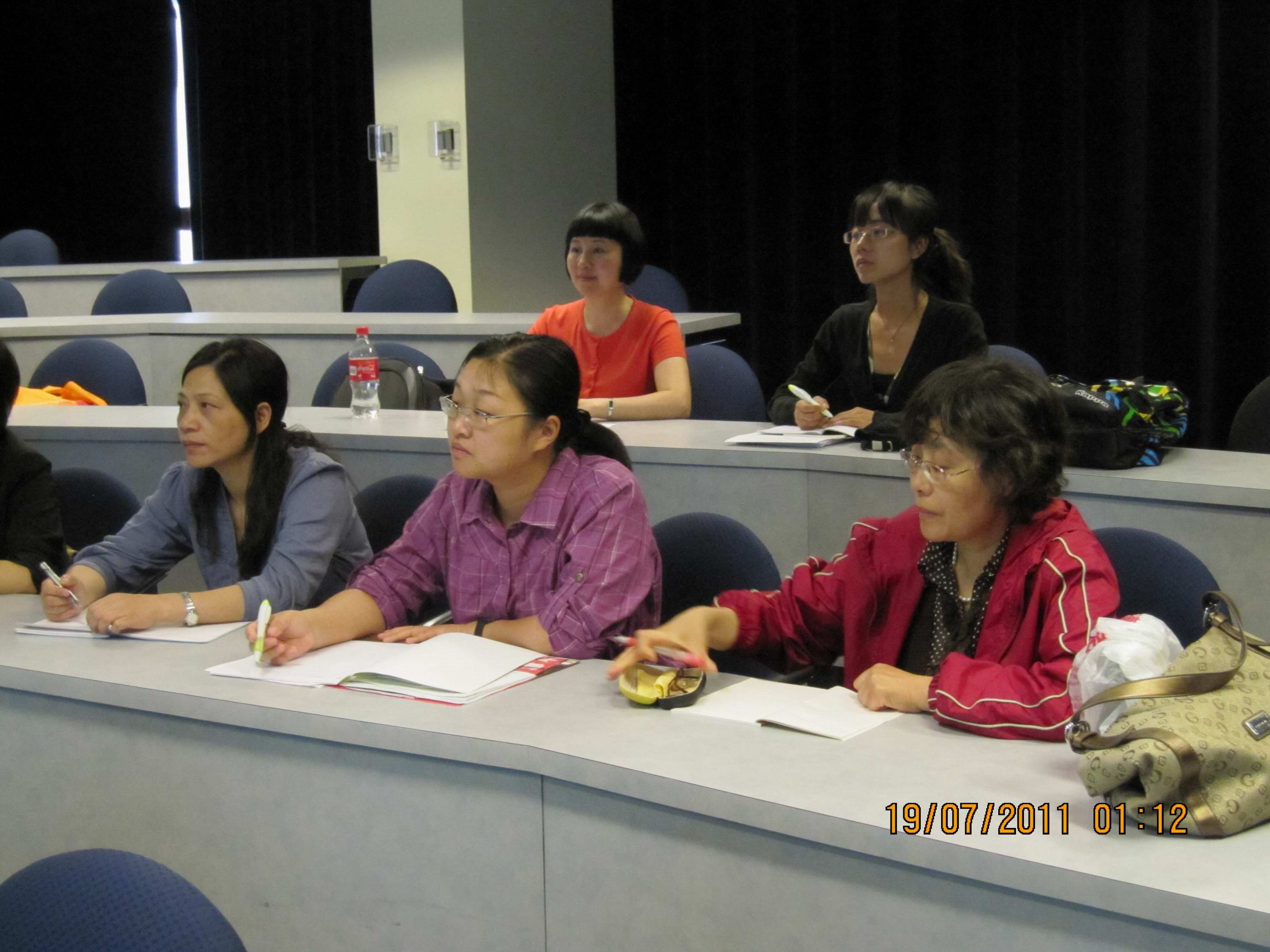 7月18日下午在加拿大麦吉尔大学继续教育学院1041礼堂,我院教师亲身感受了著名教授Mark Medicoff风趣生动的“演讲技巧”讲座。讲座自始自终师生互动。讲座过程中学员走上讲台展示不同的授课技巧、体验教学理念在课堂教学中的实际应用。讲座在教师们的热情投入中结束。图为我院教师参加培训的实景。