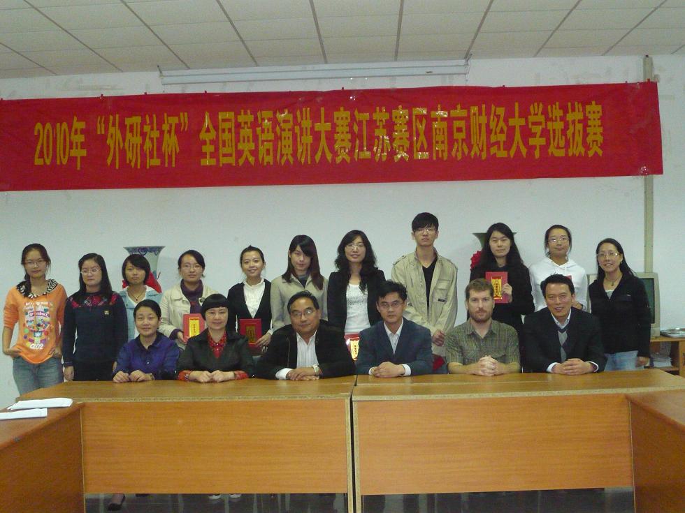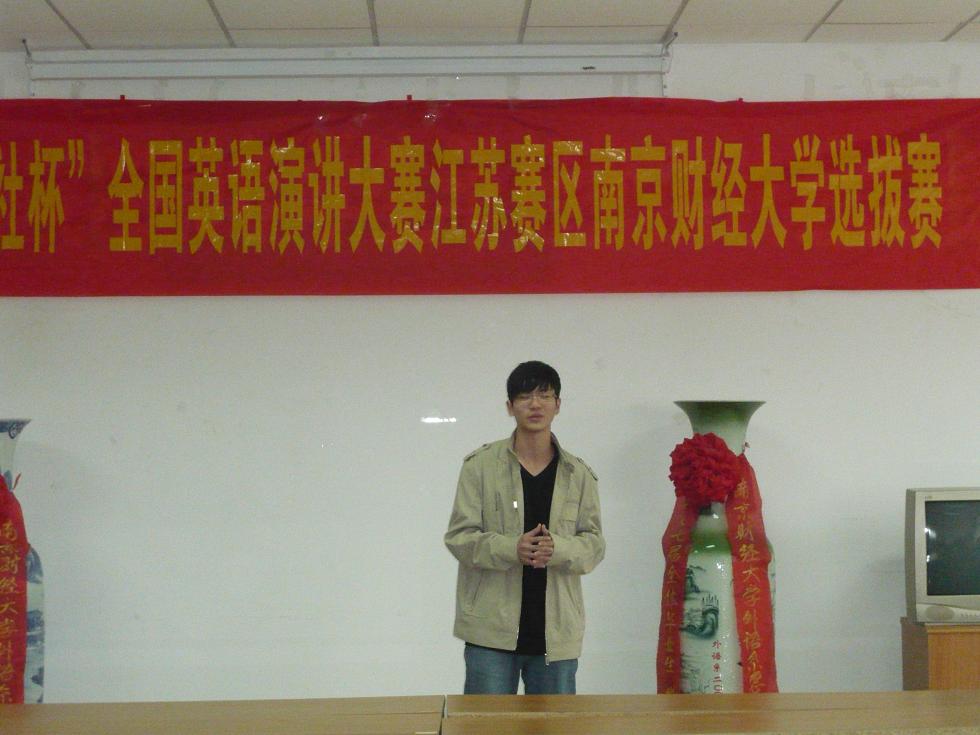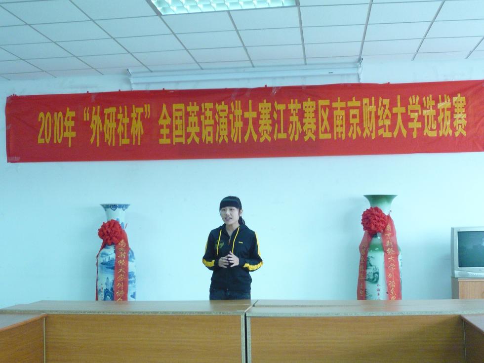 2010年10月13日14:00,2010年“外研社杯”全国英语演讲大赛江苏赛区英国上市官网365选拔赛在专三308拉开帷幕。42位参赛选手带来了他们自选主题的精彩演讲。此次选拔赛有评委老师有院长王克明教授、党总支书记肖辉教授、国际合作与交流处黄能副处长,副院长孙勇彬教授、外教Devek和韩静老师。